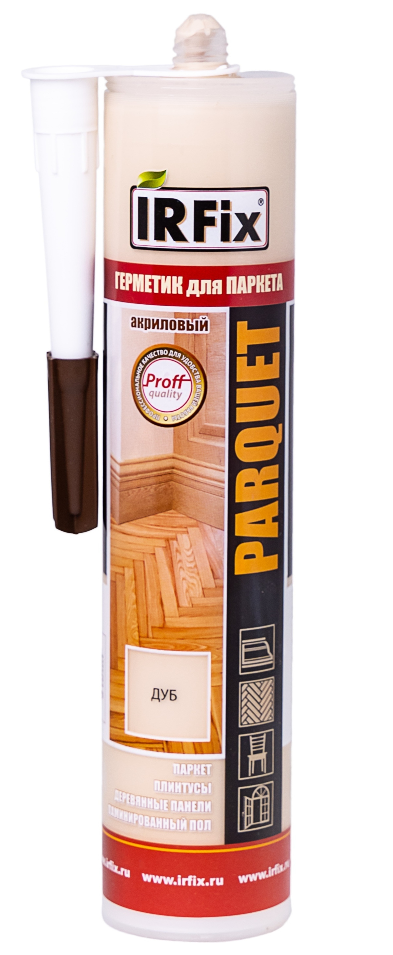 Герметик акриловый для паркета - эластичный высококачественный герметик без запаха, предназначен для заполнение щелей и трещин на деревянных поверхностях, в паркетных и ламинатных полах, для герметизации стыковочных швов, а также, швов в плинтусах, полах, паркете и ламинате, для заполнения швов между деревом и строительными материалами.