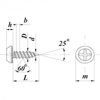 Саморез с полуцилиндрической головкой, острым наконечником используется для соединения металлических листов толщиной до 0,9 мм между собой без предварительного сверления.
