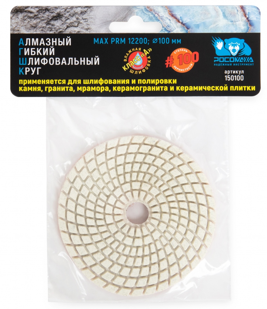 Алмазный гибкий шлифовальный круг ТМ РОСОМАХА используется для мокрой полировки и шлифовки поверхностей любых видов натурального и искусственного камня, гранита, мрамора, керамогранита и керамической плитки.