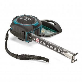 Имеет второй класс точности, обрезиненный корпус, магнит, черно-белую устойчивую измерительную двухстороннюю ленту шириной 19 мм и большой зацеп