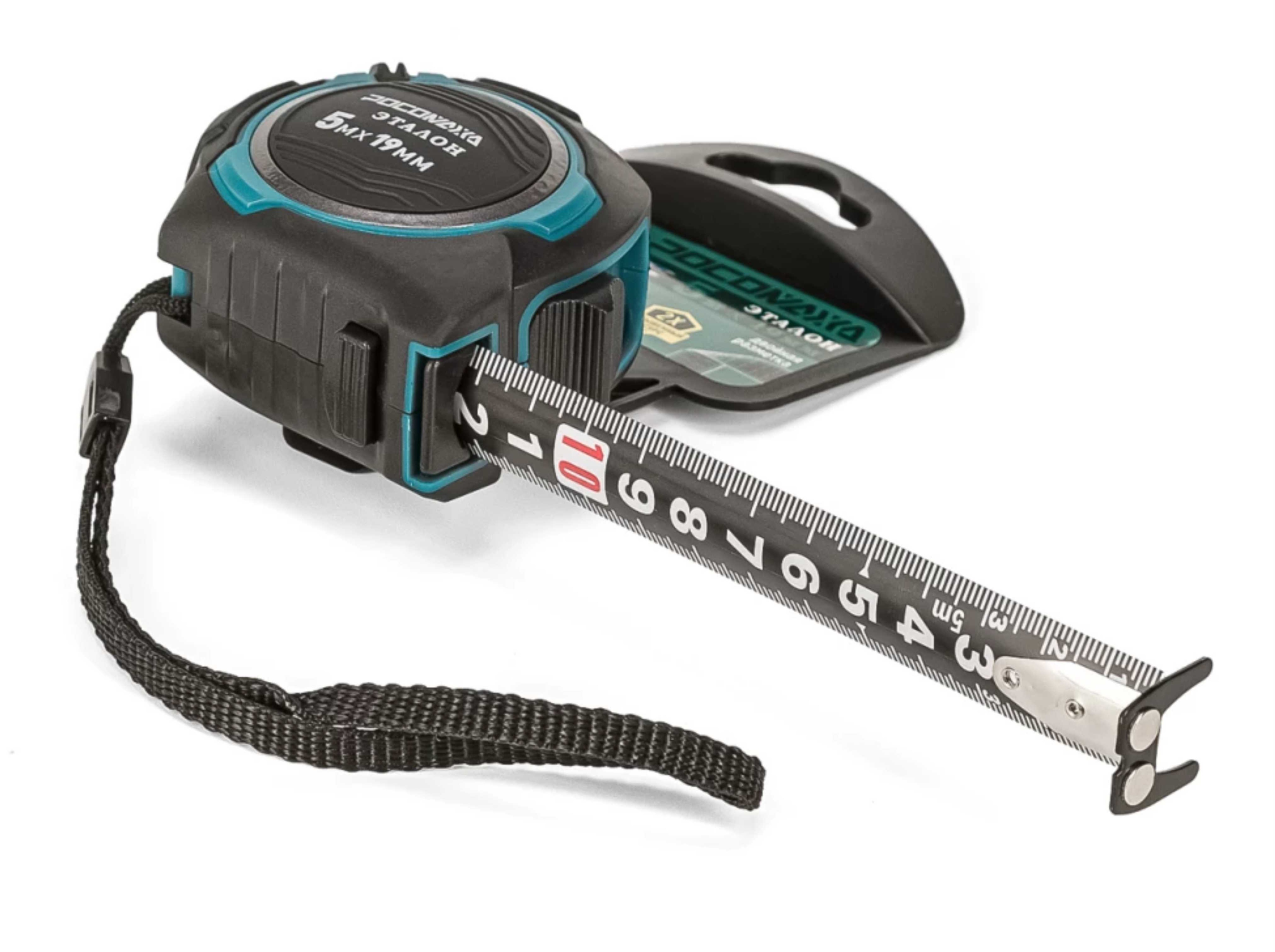 Рулетка ЭТАЛОН ТМ РОСОМАХА применяется в профессиональной сфере. Используется для замера поверхностей и расстояний при выполнении ремонтных, строительных и прочих работ.
