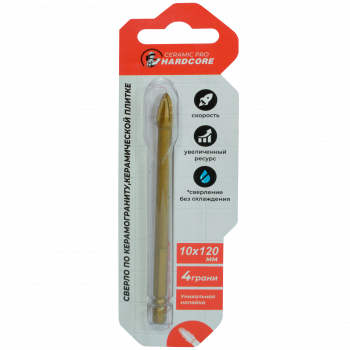 Сверло по керамограниту, керамической плитке и стеклу ТМ "Hardcore" имеет высокую твердость и прочность. Отличается высоким ресурсом.