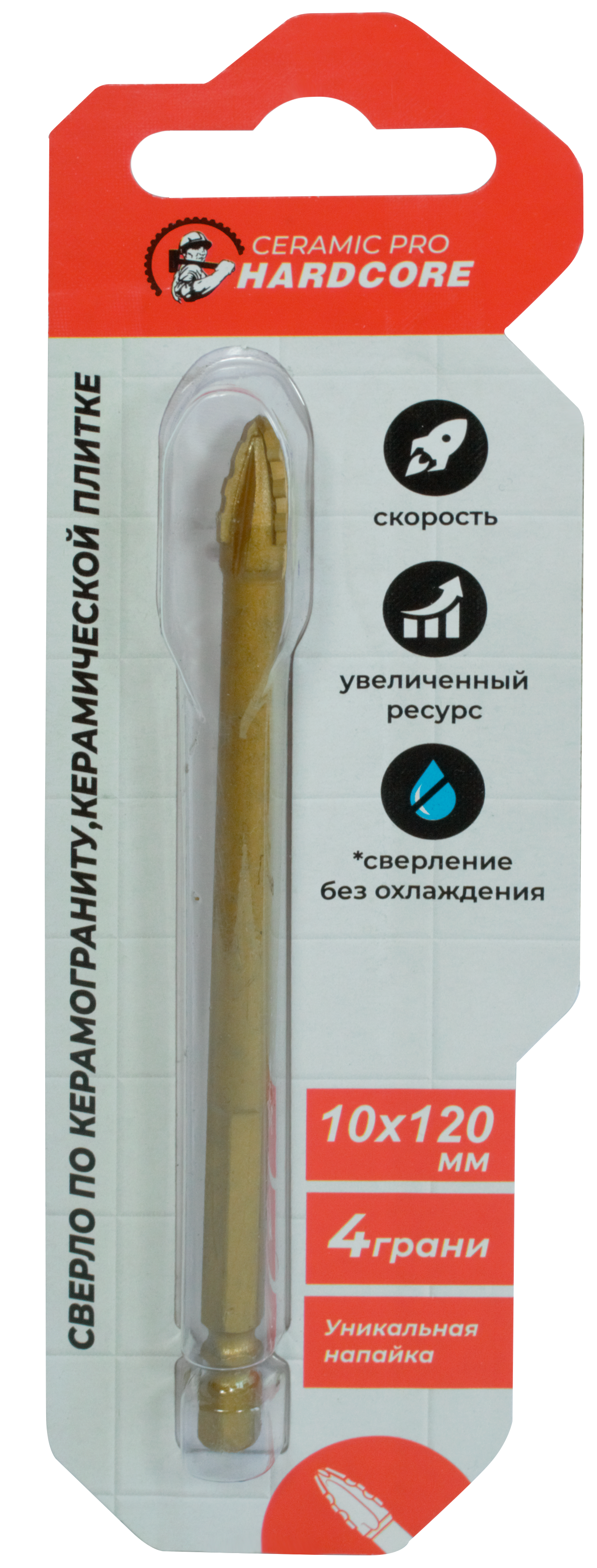 Сверло зубчатое 10 х 120 мм удлиненное по керамограниту, кафелю, стеклу Ceramic Pro Hardcore