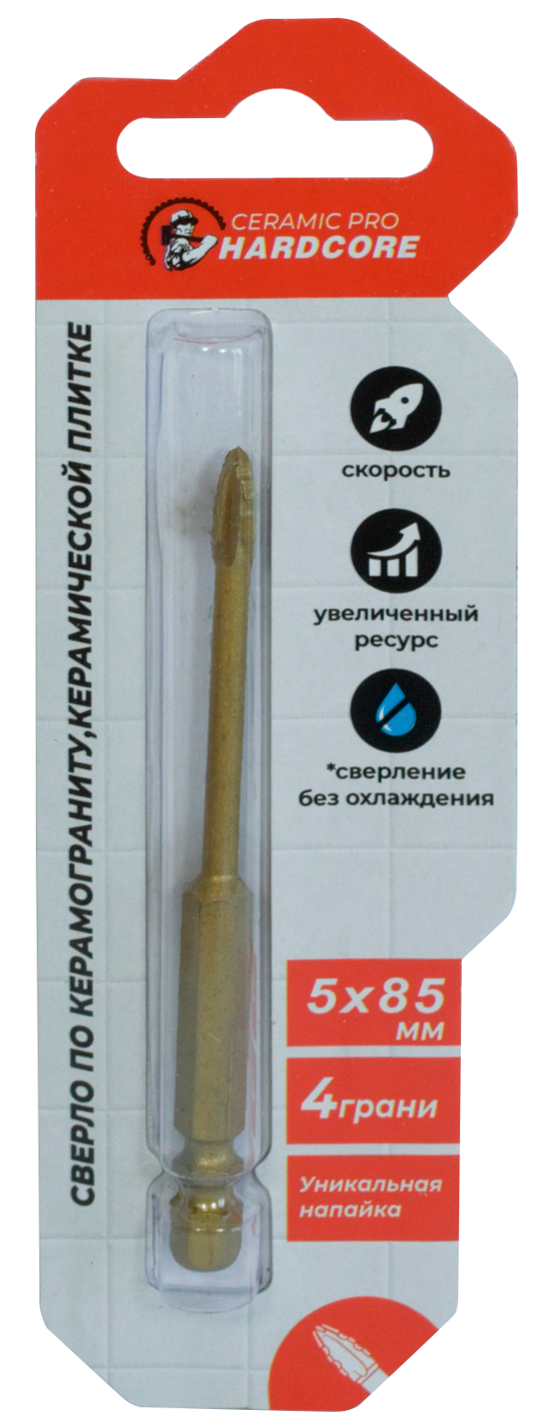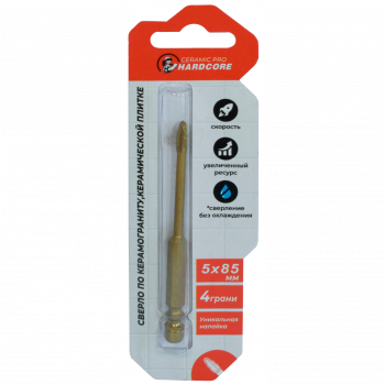 Сверло зубчатое 5 х 85 мм удлиненное по керамограниту, кафелю, стеклу Ceramic Pro Hardcore