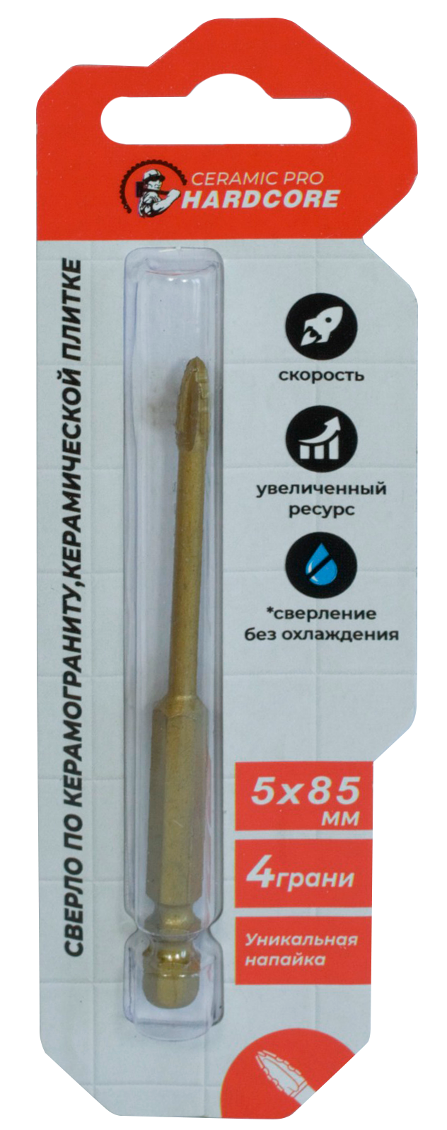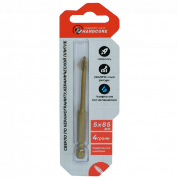 Сверло по керамограниту, керамической плитке и стеклу ТМ "Hardcore" имеет высокую твердость и прочность. Отличается высоким ресурсом.