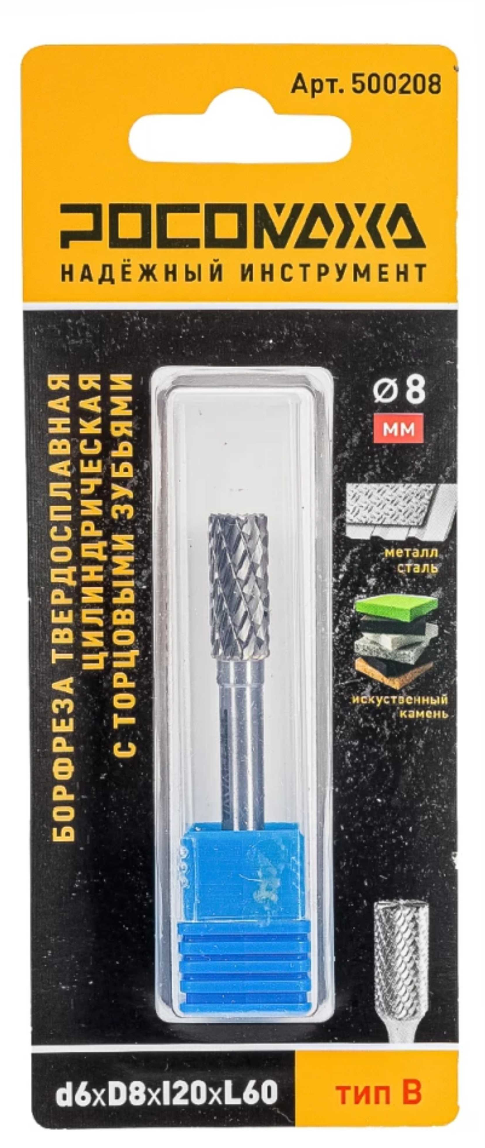Борфреза твердосплавная цилиндрическая с торцовыми зубьями РОСОМАХА тип В предназначена для прямошлифовальных машин.