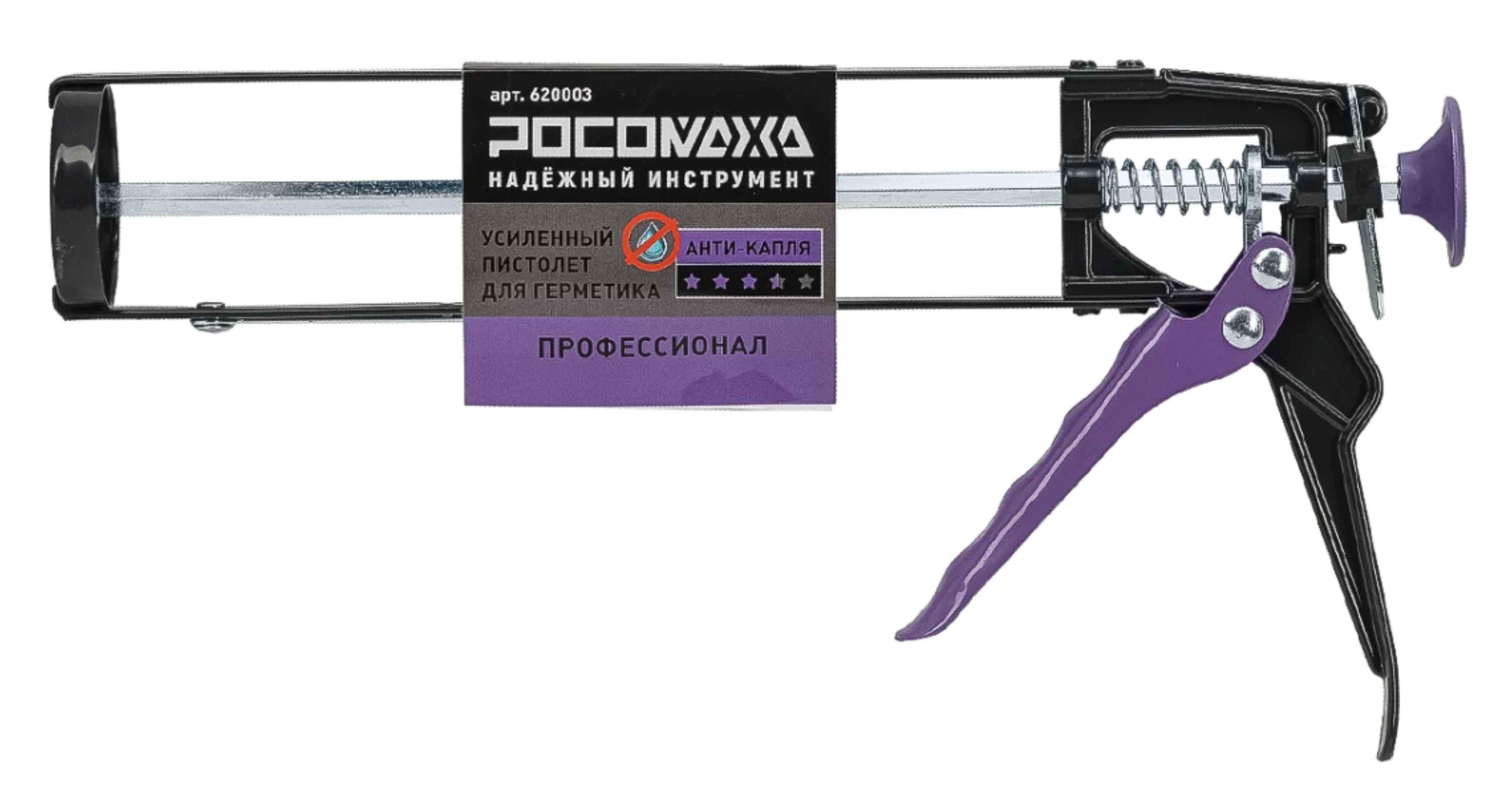 Усиленный пистолет для герметика АНТИ-КАПЛЯ ТМ "Росомаха" предназначен для регулярных работ высокой интенсивности, с повышенным требованием к эффективности, скорости и удобству работы.