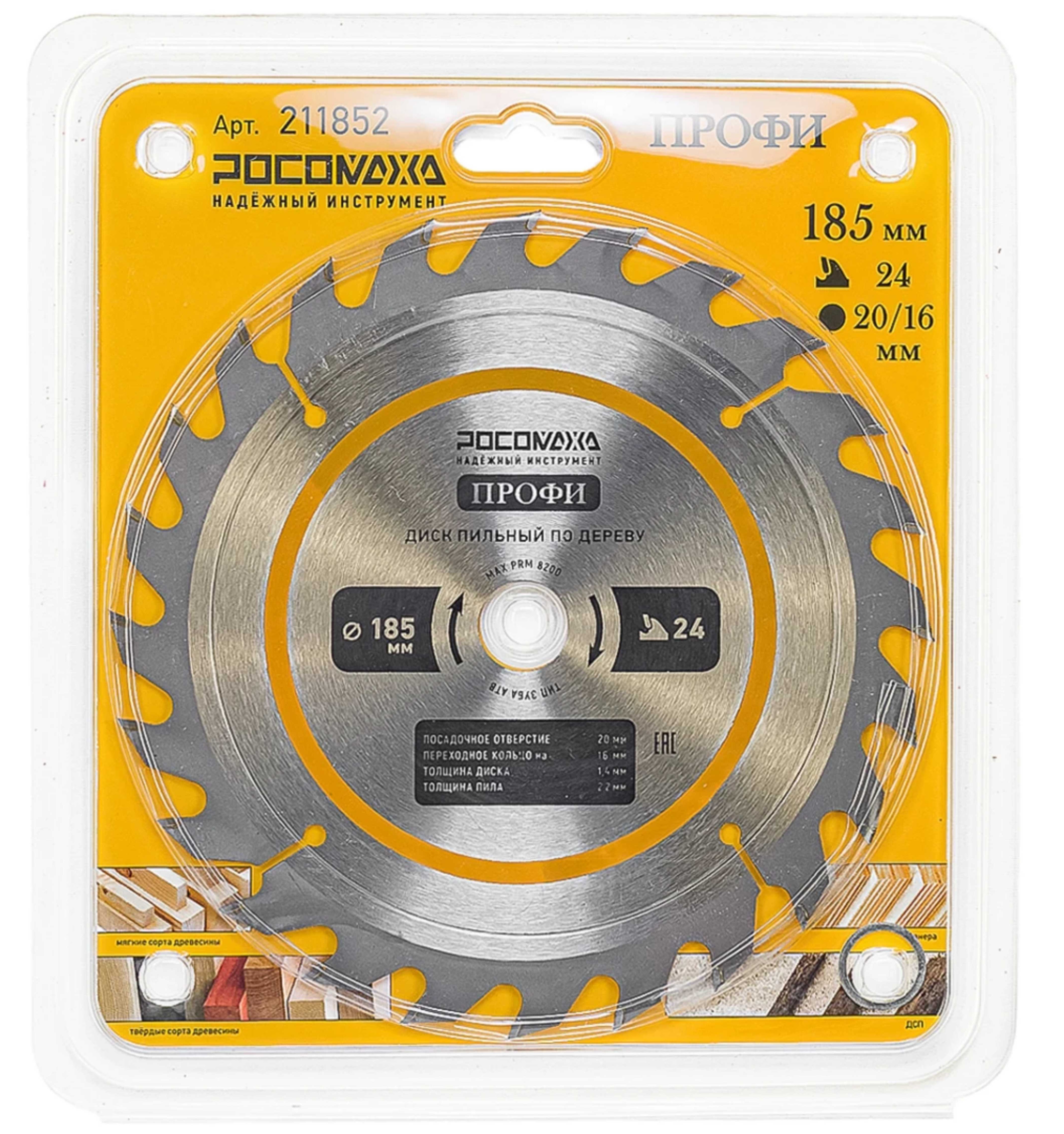 Профессиональный высокопроизводительный диск ТМ РОСОМАХА серии ПРОФИ предназначен для чистого и точного реза по мягкой или твердой древесине, фанере и ДСП.